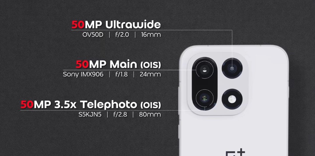 OnePlus 15 में 50 मेगापिक्सल मेन कैमरा, अल्ट्रा वाइड और 3.5x टेलीफोटो लेंस दिया गया है, जो डिजिटली 120x तक ज़ूम कर सकता है। सेल्फी कैमरा 32 मेगापिक्सल का है। इस बार Hasselblad के साथ कोलैबोरेशन हटाकर “Detailed Max Engine” इमेज प्रोसेसिंग सिस्टम दिया गया है।