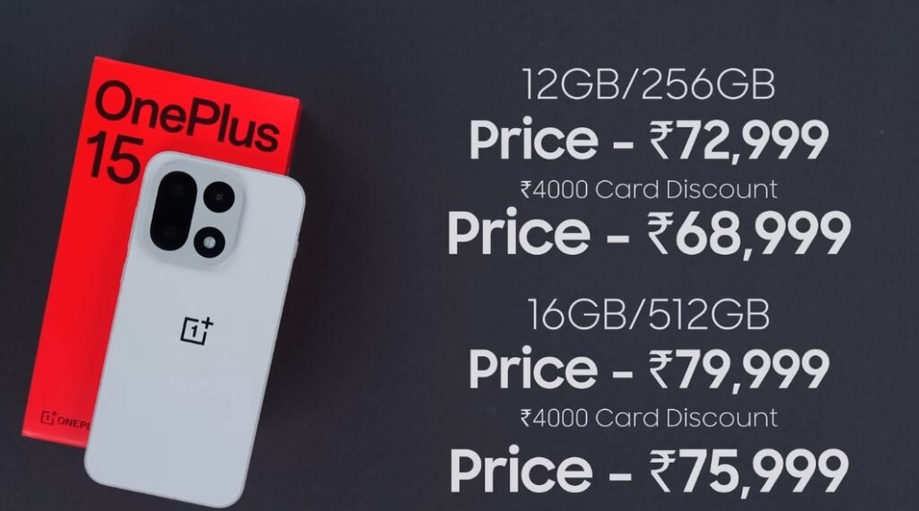 फोन दो वेरिएंट में आता है: 12GB RAM + 256GB स्टोरेज जिसकी कीमत लगभग ₹7299 है, जिसमें 4000 का कार्ड डिस्काउंट लगाकर कीमत ₹6899 तक आ जाती है। दूसरा वेरिएंट 16GB RAM + 512GB स्टोरेज के साथ आता है। Hasselblad कोलैबोरेशन हट जाने के बाद भी हार्डवेयर और फीचर्स की बात करें तो OnePlus 15 एक दमदार फ्लैगशिप स्मार्टफोन है।